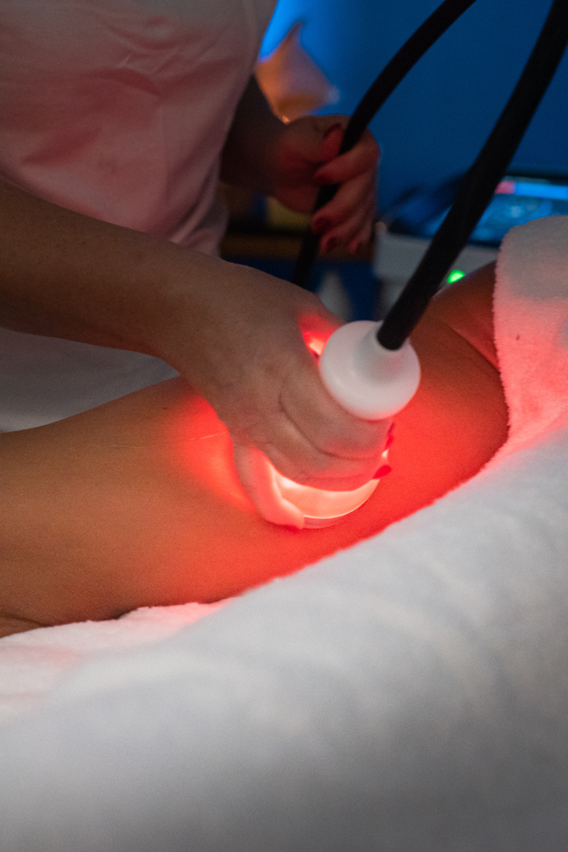 SUL CORPO: gli impulsi di elettrostimolazione attivano la contrazione del sottostante strato muscolare e, insieme allo shock termico esercitato dal manipolo, si determina un diretto utilizzo dei grassi localizzati.